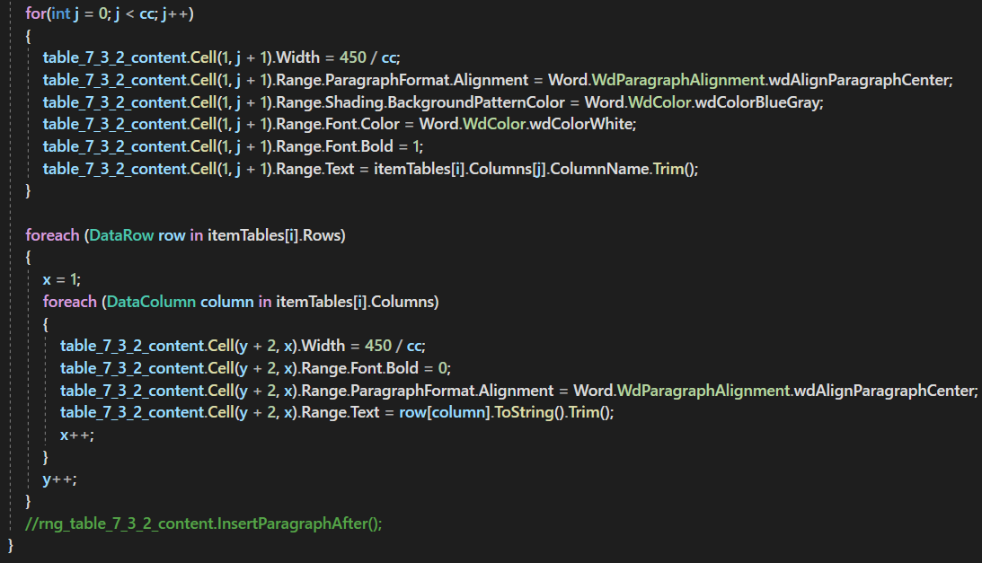 Winform UI에 있는 DataTable을 워드로 옮기고 싶다.