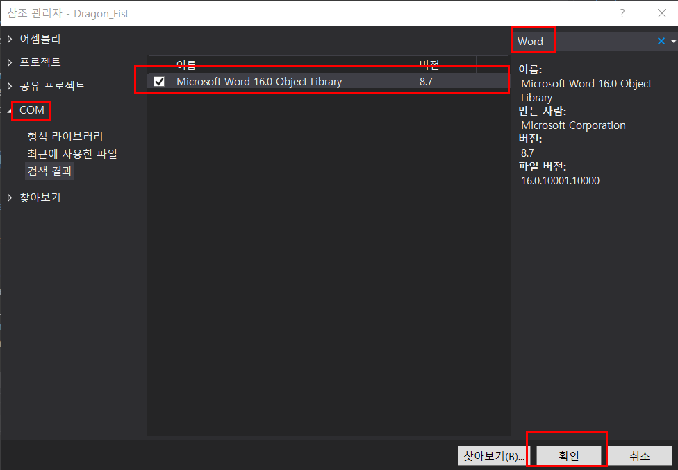 1. using Word = Microsoft.Office.Interop.Word; 을 선언해준다.